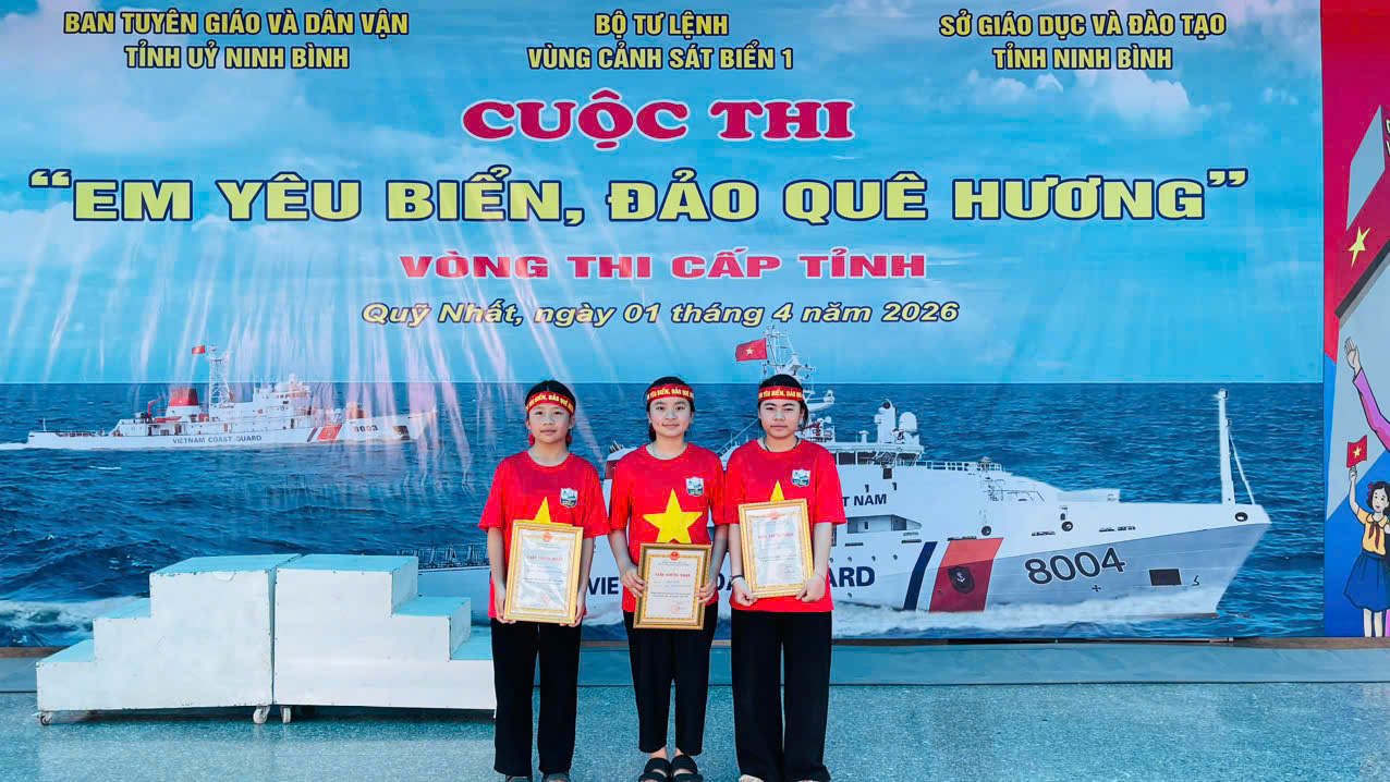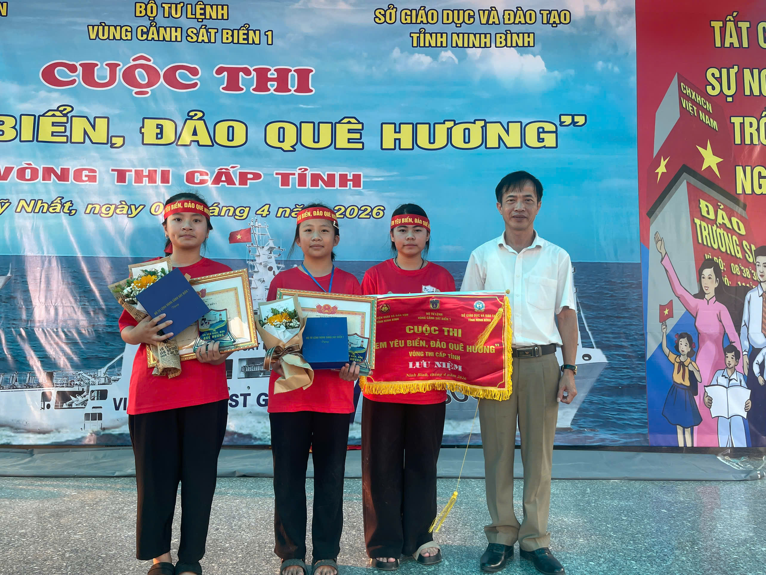 Chiều ngày 01/04/2026, Trường THCS Hải Ninh đã tham gia vòng chung kết cấp tỉnh Cuộc thi “Em yêu biển, đảo quê hương” năm 2026 do Bộ Tư lệnh Vùng Cảnh sát biển 1 tổ chức tại Trường THCS Nghĩa Tân, xã Quỹ Nhất, tỉnh Ninh Bình.
